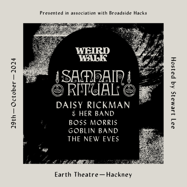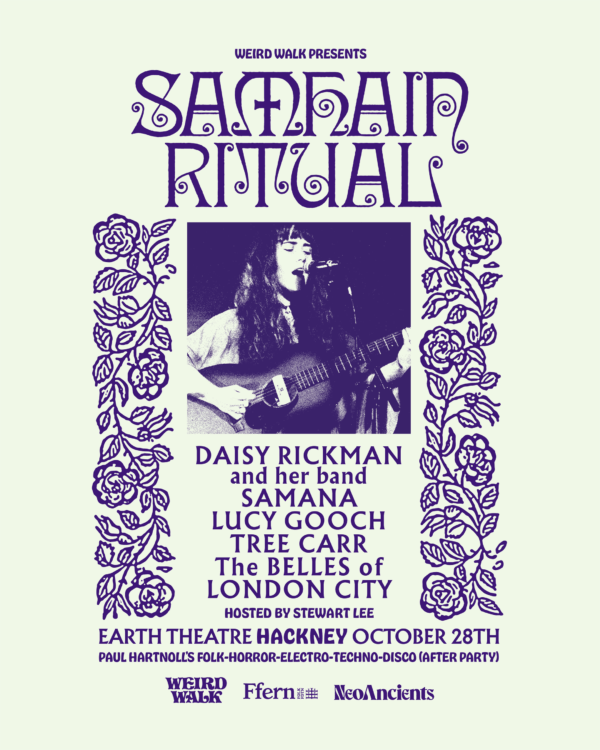 Featuring Daisy Rickman and her band, Samana, Lucy Gooch, The Belles of London City, hosted by Stewart Lee, followed by Paul Hartnoll’s Folk-Horror-Electro-Techno-Disco (After Party)